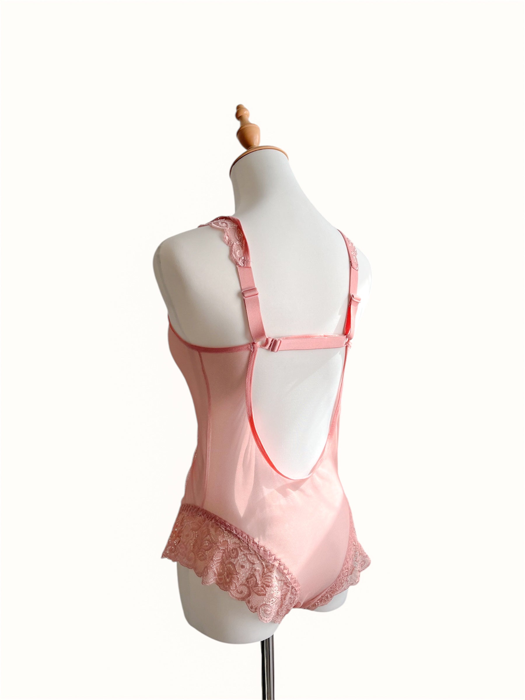 Body con completa transparencia frontal y trasera, encaje mesh. Ajustable en tirantes y en espalda. Sin broche en entrepierna.
