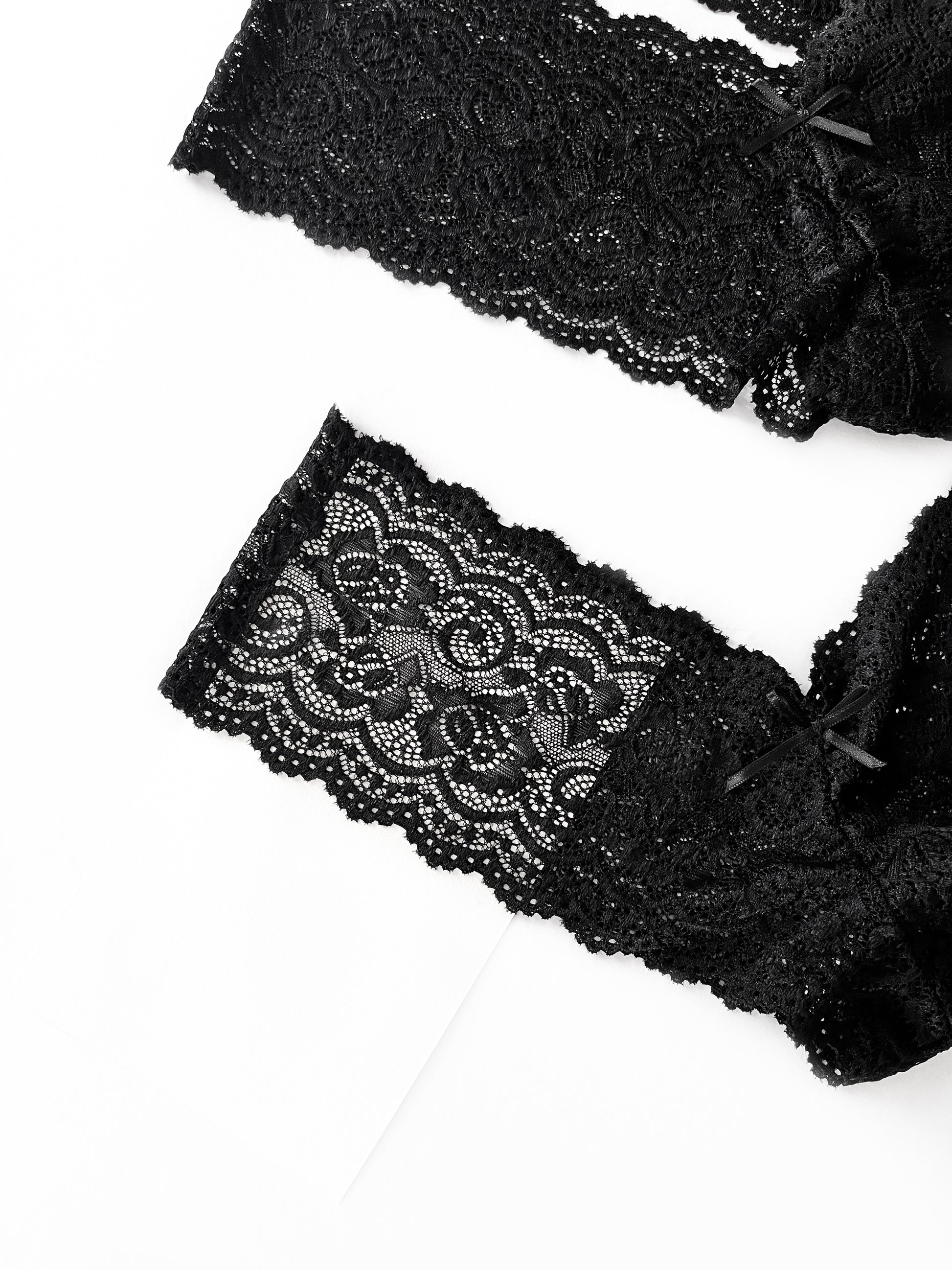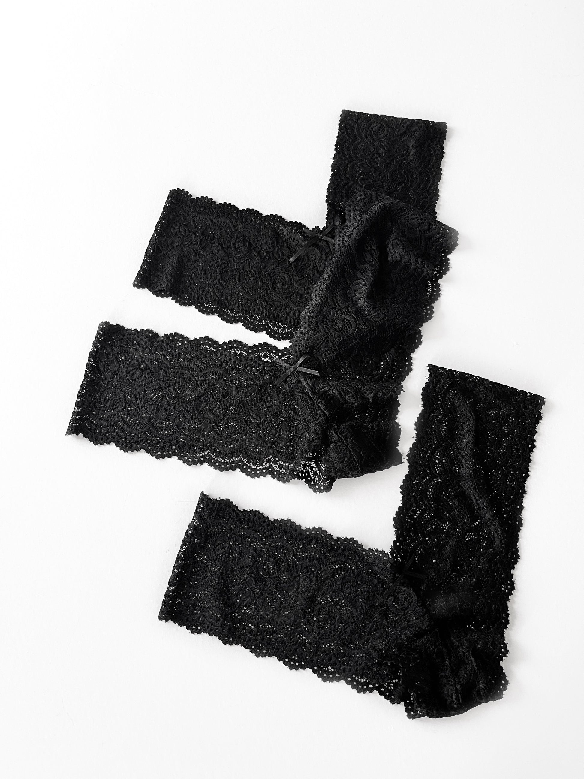 Set de 3 pantaletas corte V, encaje strech con puente de algodón.