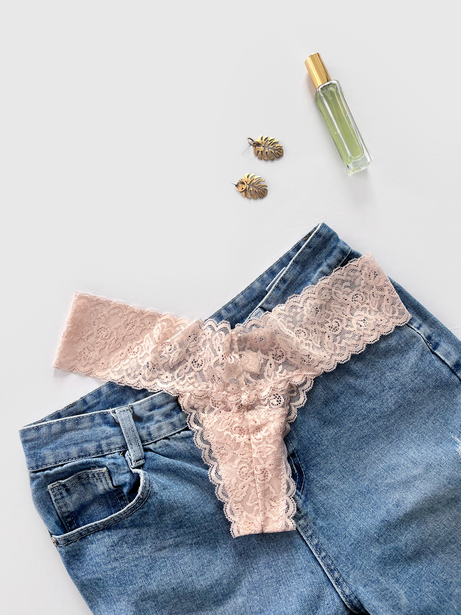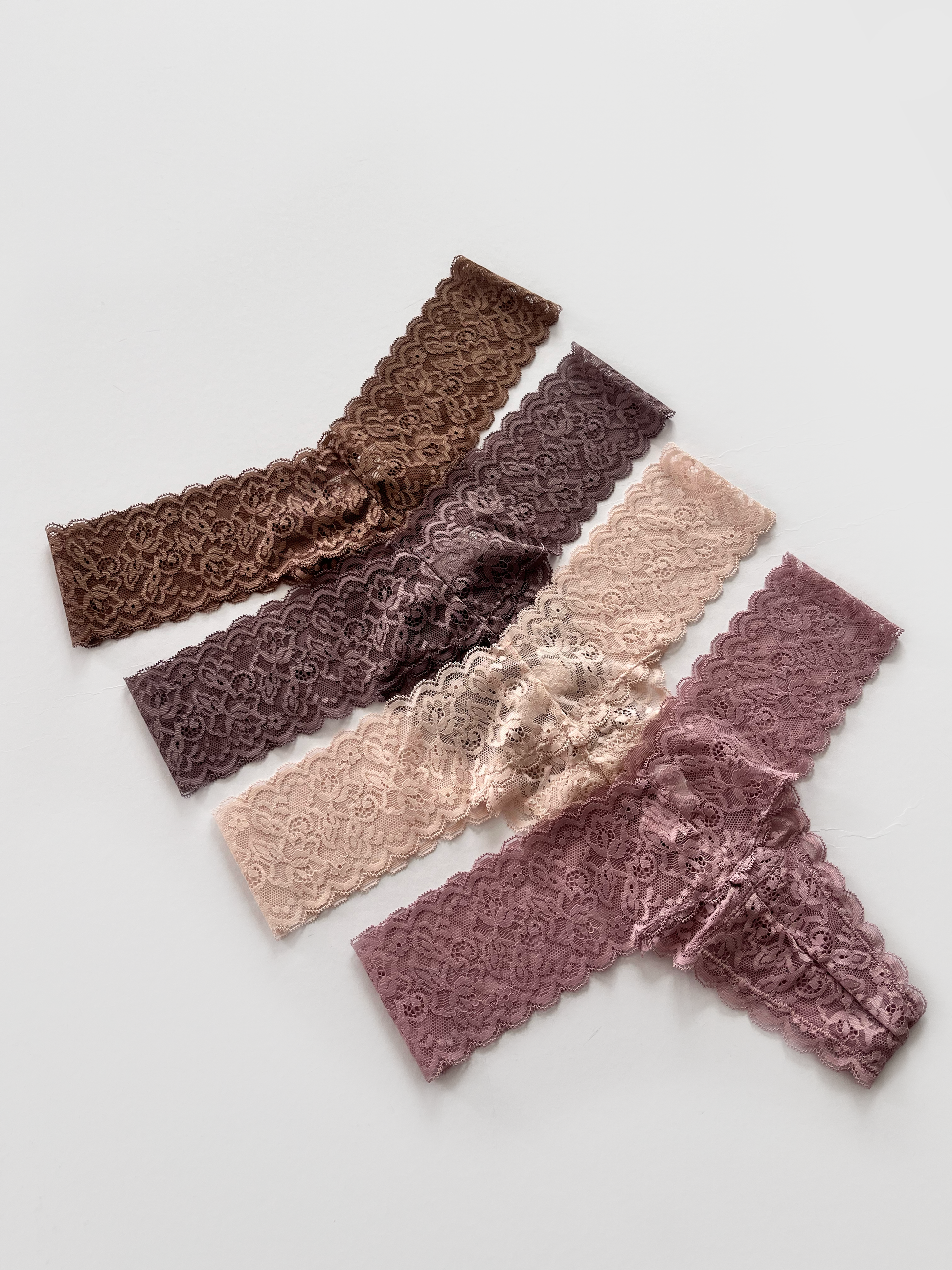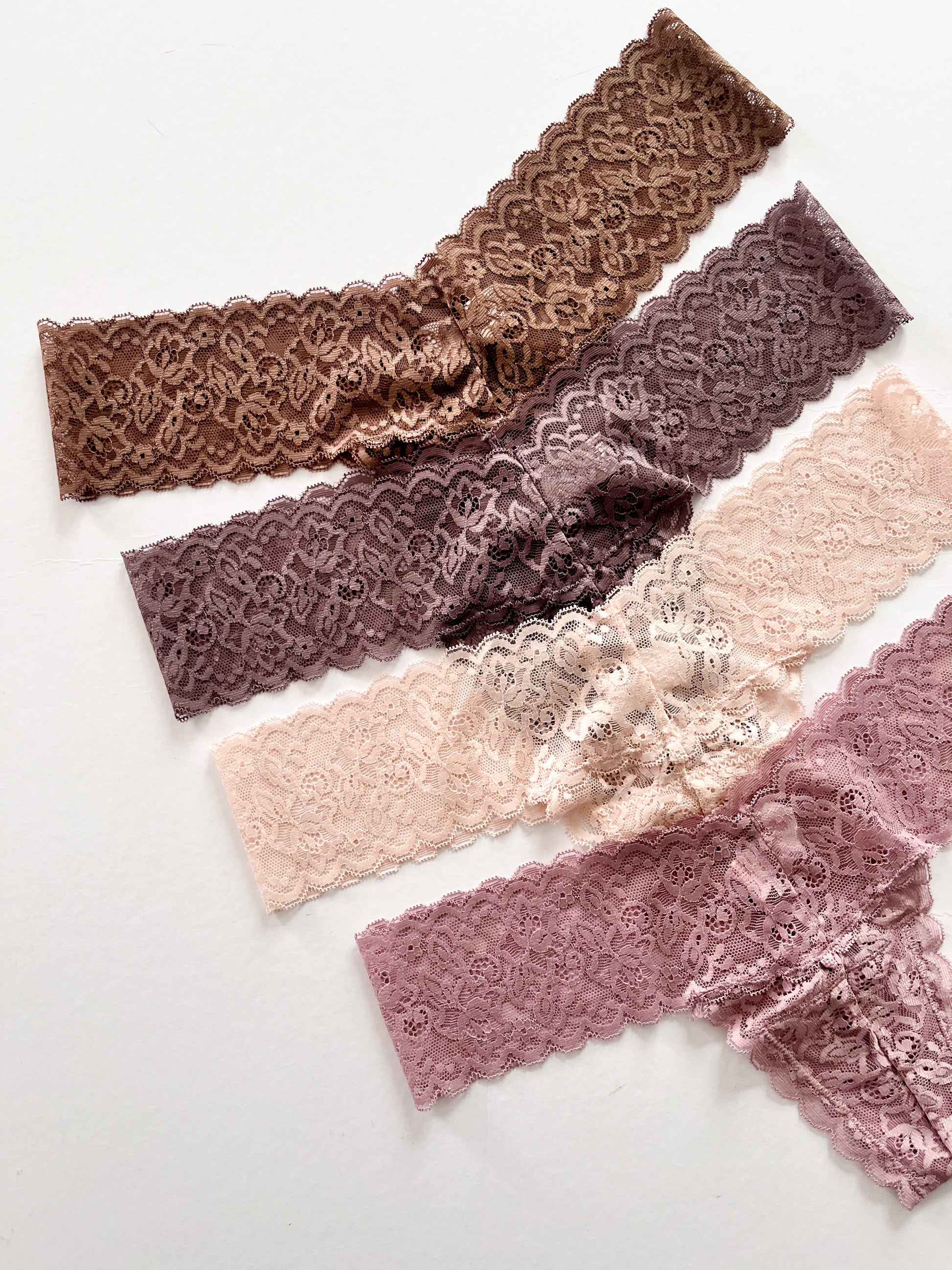 Set de pantaletas corte tanga, encaje grabado extra suave, puente de algodón.