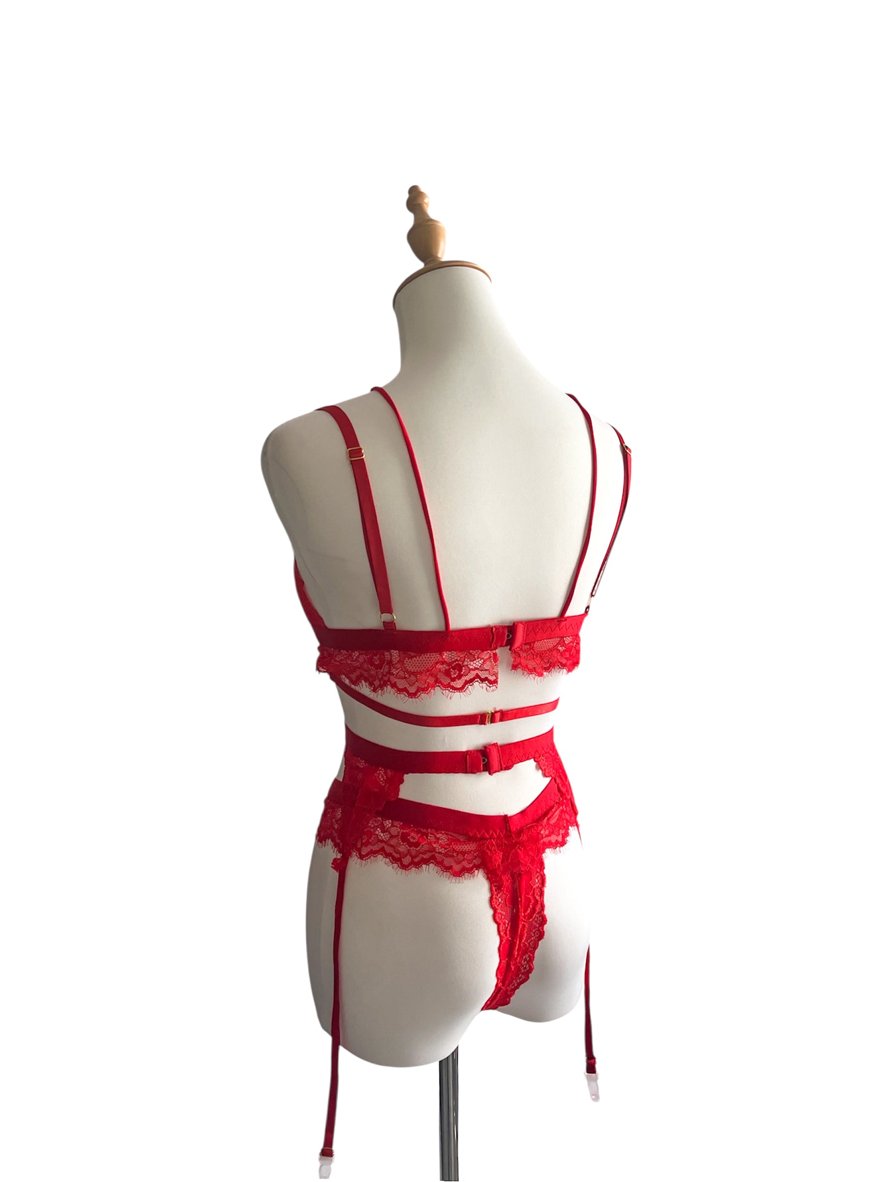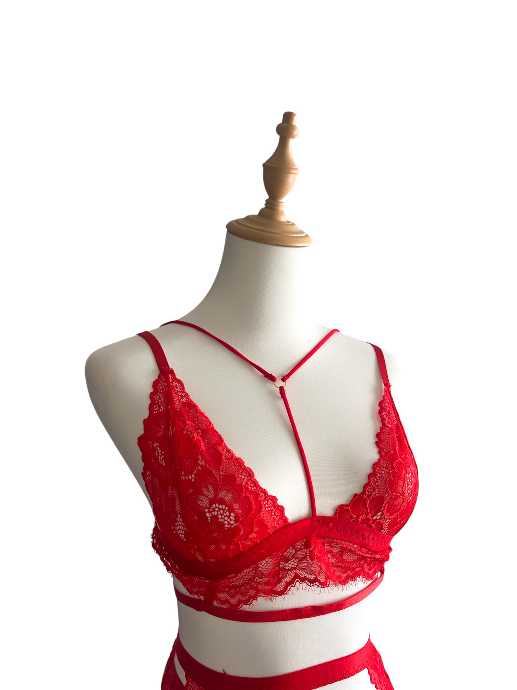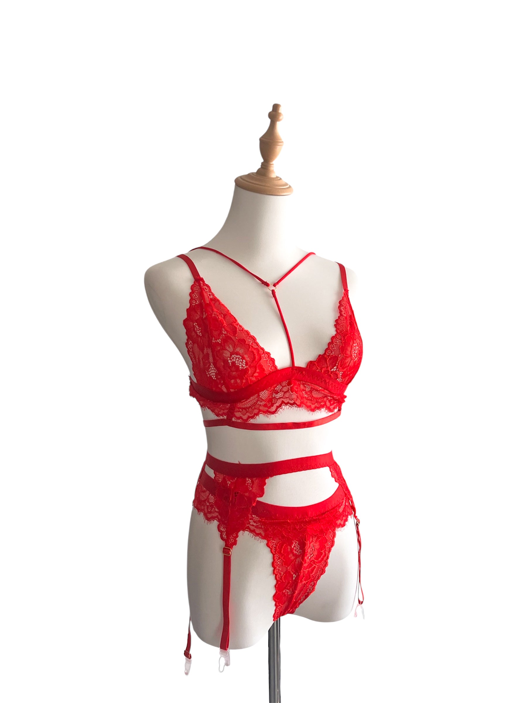 Incluye: 1 bralette, 1 tanga, 1 liguero.